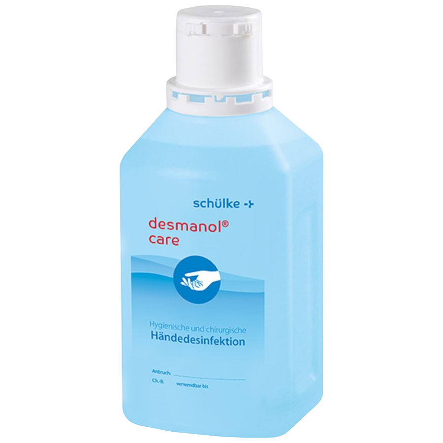 - hygienische Händedesinfektion: 3 ml desmanol^®^ care 30 Sek. in die trockenen Hände einreiben.